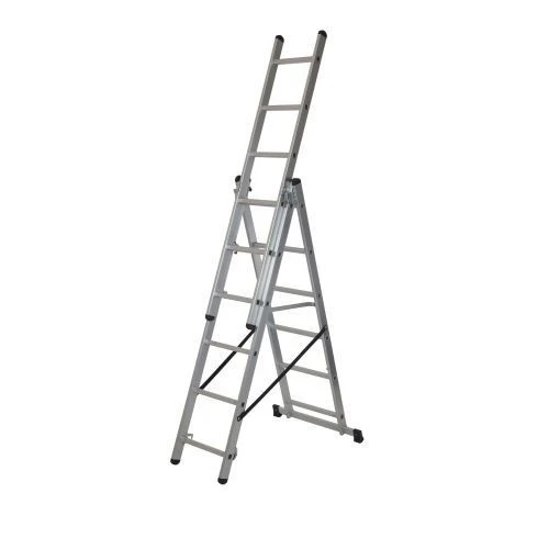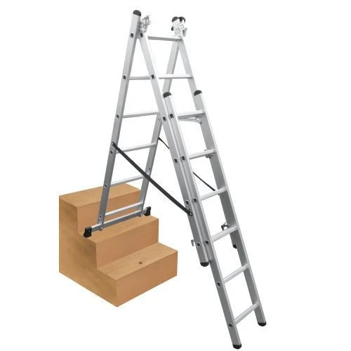 - Combines a step, extension, stairwell and freestanding extension ladder into 1