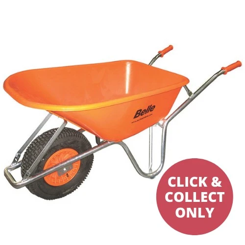 The Warrior Wheelbarrow from Belle is a heavy-duty, well balanced and ergonomic wheelbarrow which can be used for a variety of building or garden applications. It features an incredibly strong indestructible HDPE tray, which is non-stick and exceptionally easy to clean. This HDPE tray is low noise, this is perfect for loading bricks and material in an urban environment. This Warrior Wheelbarrow is fitted with an extra-wide profile, 4-ply tyre as standard which offers fantastic grip and balance in sandy conditions. The deep tread and extra inner tube help to alleviate the possibility of punctures which means you can carry on working instead of being stuck changing a wheel! The electroplated frame provides perfect strength and rigidity and the flat front tube means storing vertically is a breeze.