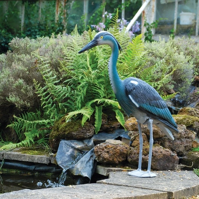 Placing decoy herons by the side of ponds has been shown to deter the real thing from feasting on fish. Herons normally go fishing early in the morning or at dusk, and will be bolder in the spring when they have young to feed. Protects fisheries, ponds and other aquatic areas.