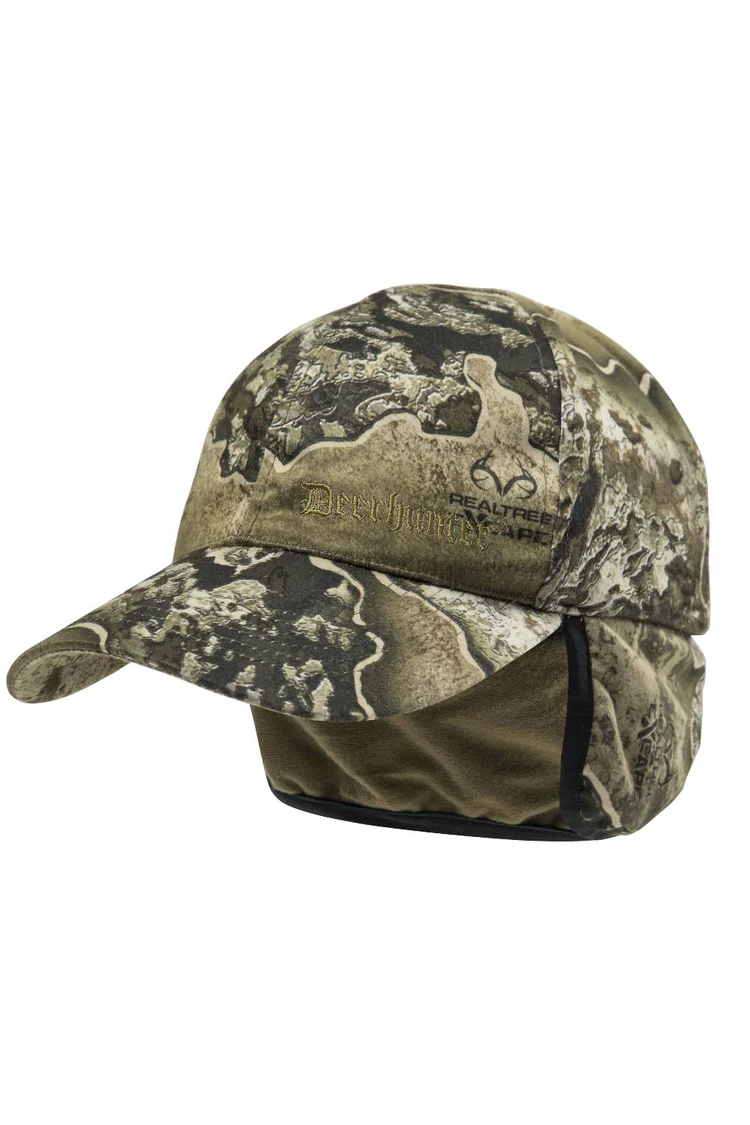 Insulated for warmth, this cap features a fold-down ear warmer to ensure your ears and neck stay cozy in colder temperatures. With a branch strap at the side and adorned with the Realtree Deerhunter pattern, this hat is both functional and stylish, providing essential protection against the chill while adding a touch of outdoor flair to your look.