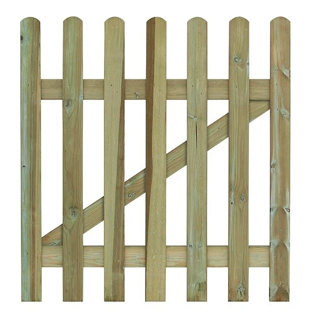 The Grange Round Top Palisade Gate has been manufactured from smooth-planed, pressure treated timber to ensure protection from wood rot and fungal decay to complement the round top Palisade fence. This gate is kind to nature, designed to last and has a matching fence. Dimensions 90 x 90 x 4 (cm)