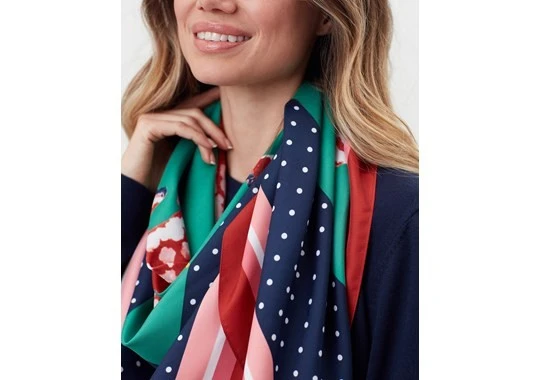 The Joules Large Square Scarf is a lightweight scarf with an all over print and rolled edges. The scarf is oversized so can be worn in a number of different ways and has a smooth finish for that luxurious touch.