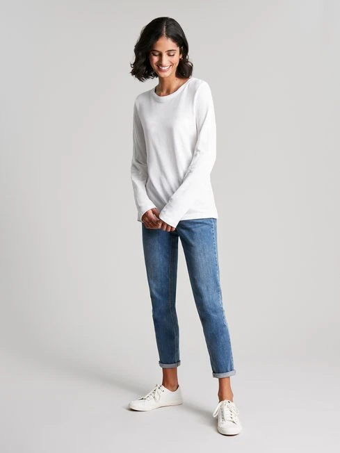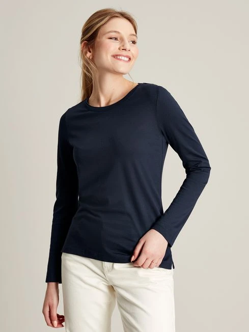 The Joules Holly Navy / White T-Shirt has long sleeves making it the perfect basic for any colder day. The soft material is a blend of 50% cotton and 50% modal and Joules is proud to be a part of the BCI, meaning you can feel confident in your purchase.