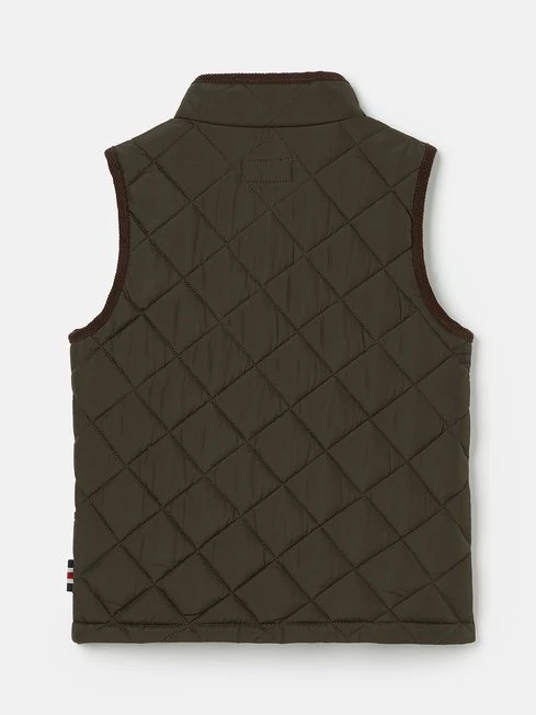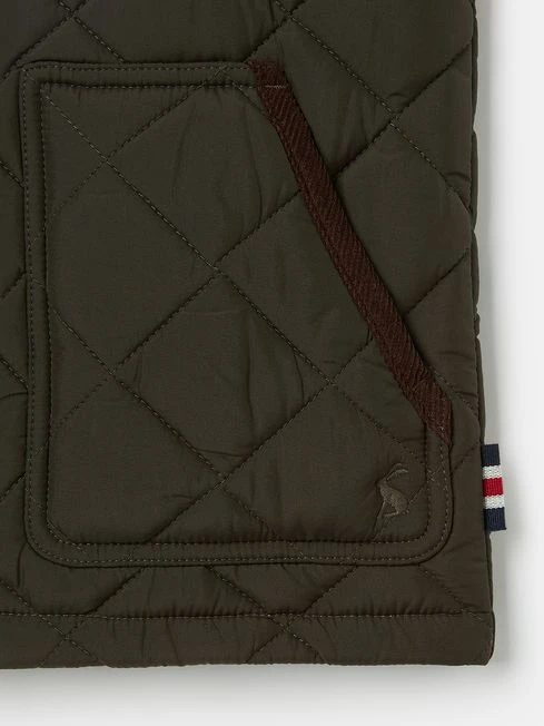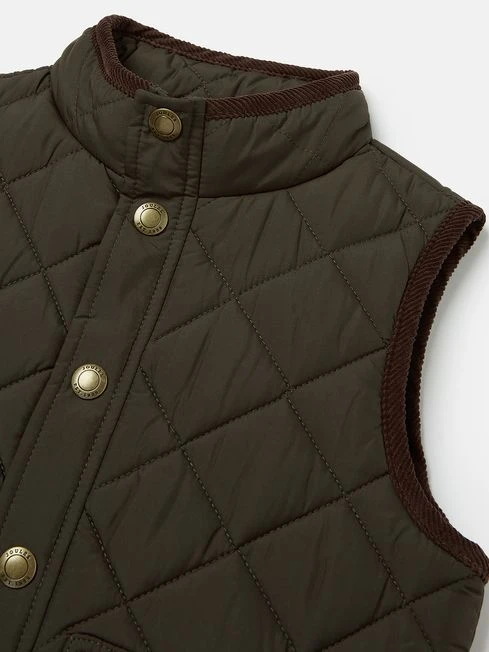 The gilet’s showerproof design, coupled with its diamond quilting both inside and out, enhances its functionality and visual appeal. Filled with warm wadding, it guarantees a snug and cozy experience. The corduroy trims and metal popper fastenings add a touch of sophistication, creating a versatile garment for various occasions.