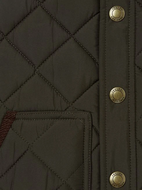 Infuse a touch of countryside charm into your little one’s wardrobe with the Hugo gilet for girls. This garment boasts classic detailing, including diamond quilting, metal popper fastenings, and corduroy trims, evoking a timeless rural aesthetic. To ensure warmth during outdoor adventures, the gilet features a quilted lining filled with wadding, while its showerproof outer fabric provides protection during light rain showers. Practical elements include two front pockets, one subtly adorned with an embroidered Joules hare, and a clever internal name label. If you’re seeking a coordinated look, explore the matching jacket style named Ambrose.