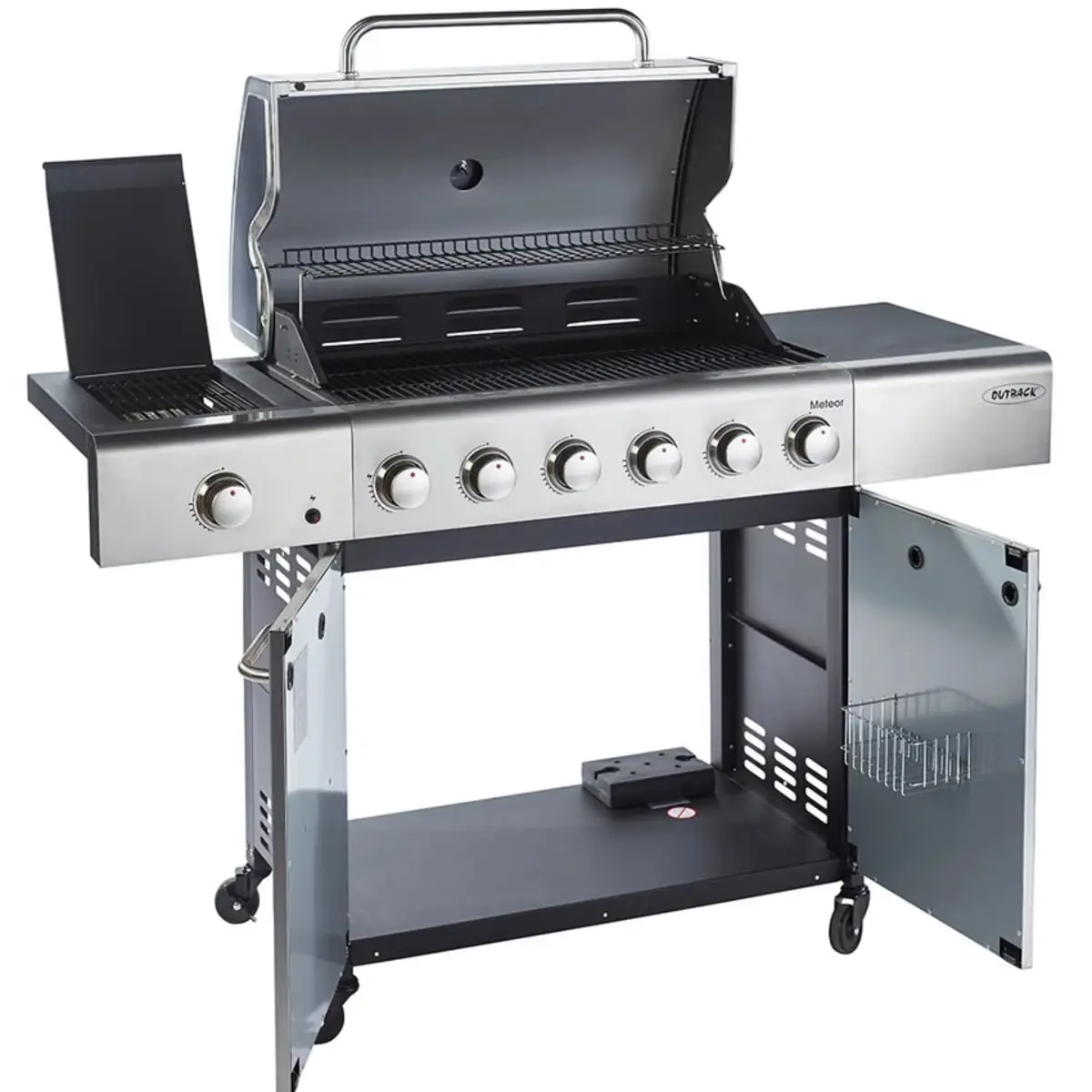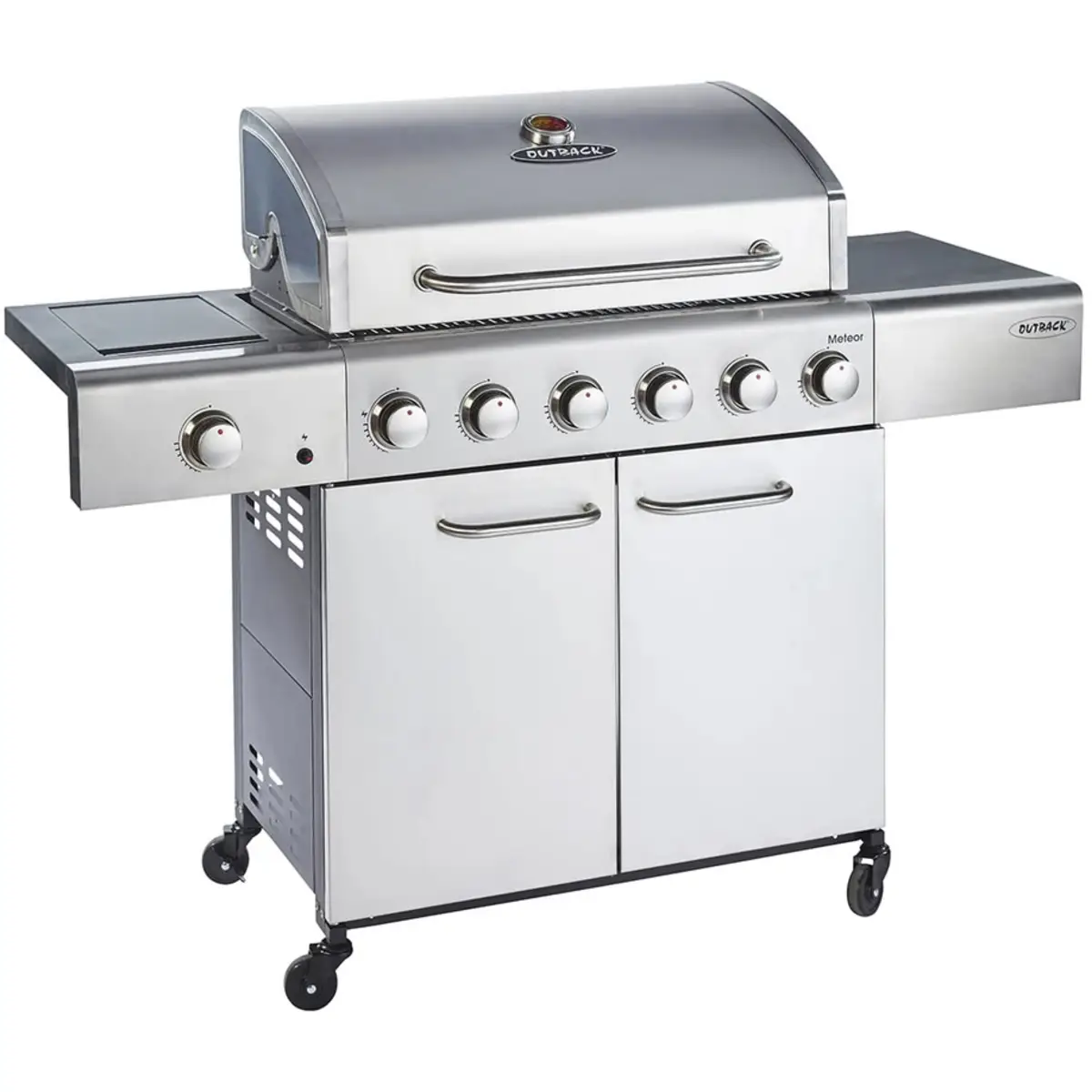 Discover the ultimate in al fresco dining with the cutting-edge Outback Meteor Stainless Steel 6 burner gas barbecue ? a culinary marvel at your fingertips. Crafted with sleek stainless steel, this barbecue redefines outdoor cooking to make your gatherings truly unforgettable.