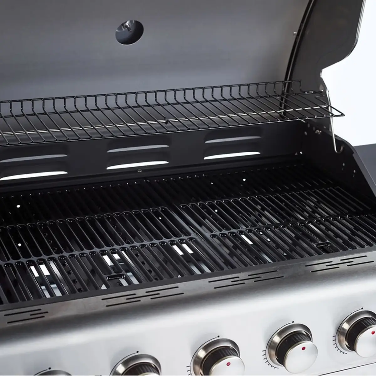 Worried about setup? Fear not! The Meteor 6 Burner Stainless Steel comes complete with a hose and propane regulator, ensuring a seamless and safe connection to your gas supply.