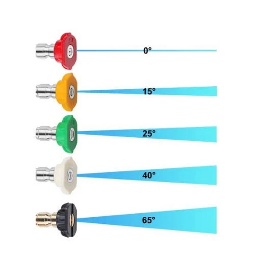 This set of pressure washer nozzles are manufactured from durable stainless steel and brass and are universal to fit most leading brands of pressure washers. They are colour coded to help with identification for the width of spray. The variety of nozzles can all be used for different cleaning jobs, for example, the finest stream can be used to clean hard dried on muck, where the widest fan can be used as a final rinse wash when your job is complete.