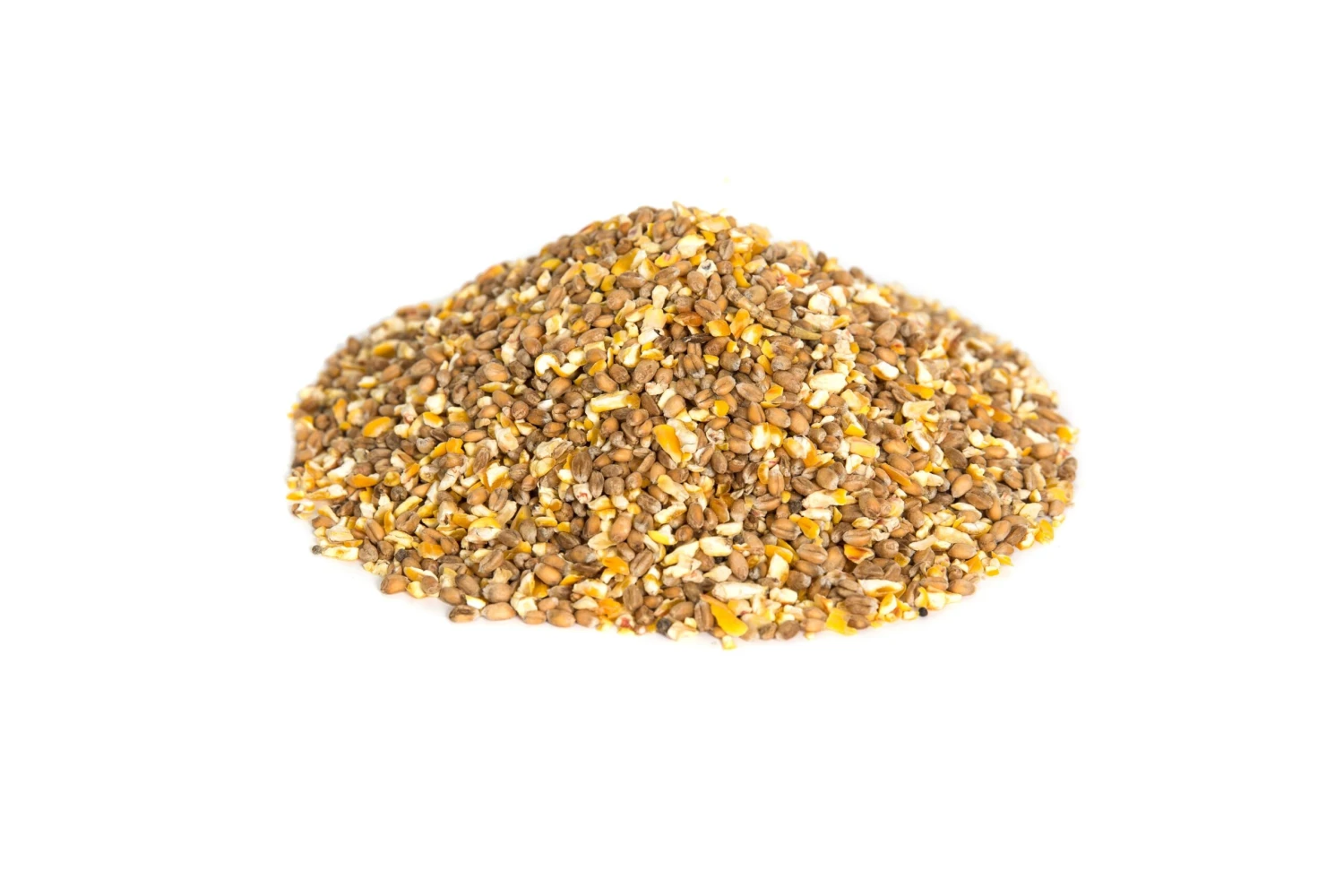 - A 50/50 mix of wheat and kibbled maize