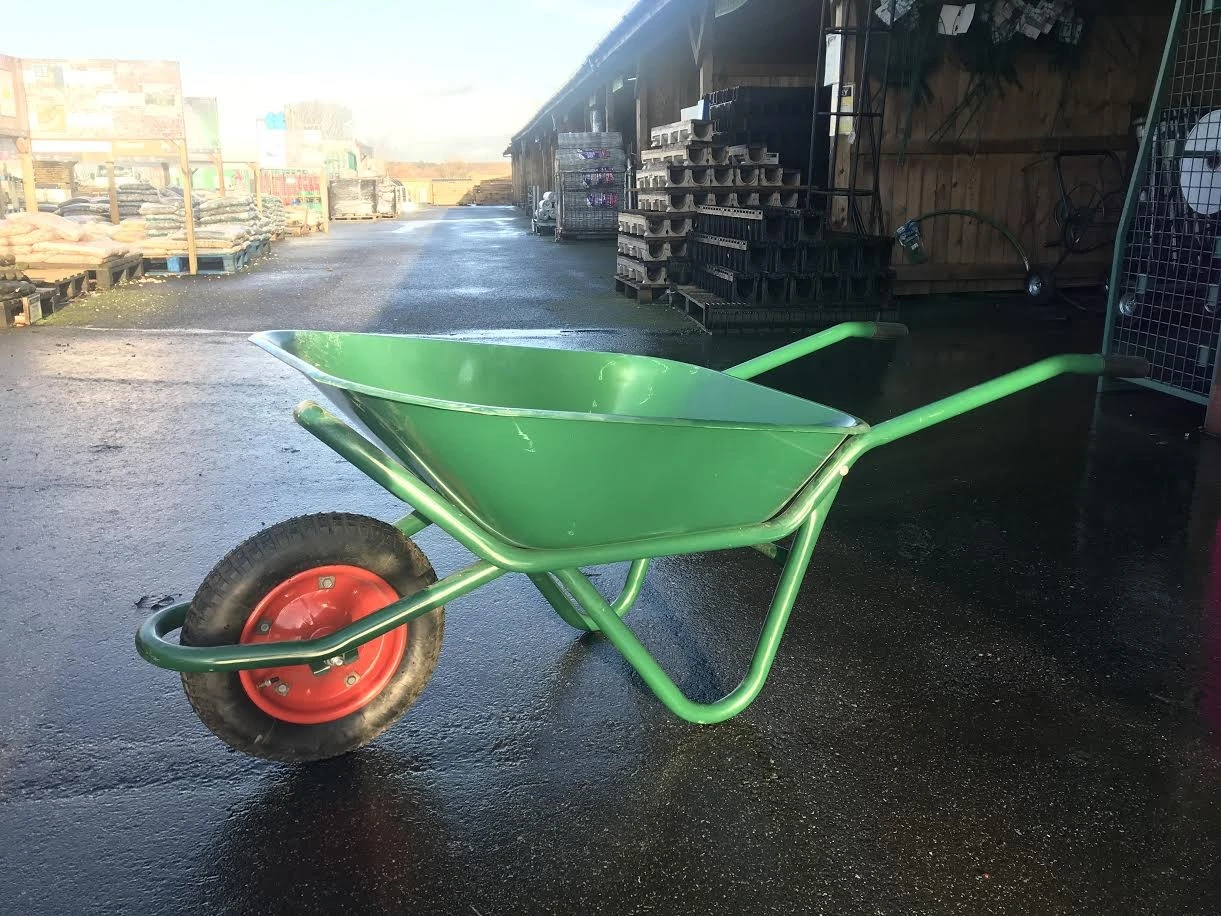 This large all-steel builders barrow is made from heavy-duty steel. The frame and steel tray means this wheelbarrow is capable of holding up to 120KG of weight. It is ideal for use in various places such as building yards, stables, around the garden and much more. It has a sturdy front wheel which makes manoeuvring the barrow a breeze and the grippy handles make it easy on your hands.