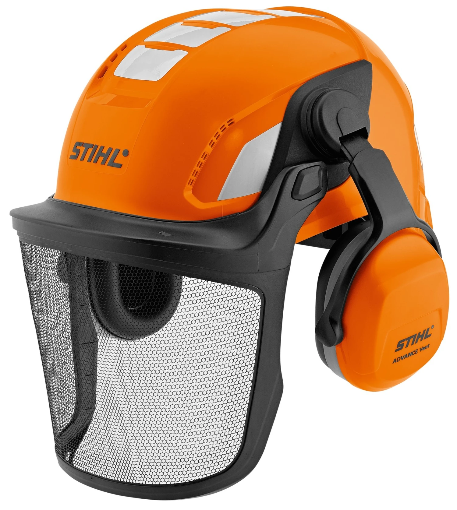 The STIHL ADVANCE Vent Helmet Set is a high-quality vented helmet with slim profile ear protectors for comfort and mobility during operation. Thanks to the simple ratchet adjustment headband, it’s easy to get set up. Reflective stickers are visible from all angles to help aid a safe working environment. This helmet also features a sturdy metal mesh visor which allows up to 70% light visibility for a protected and clear view.